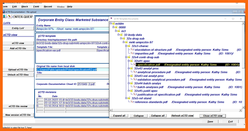 In the eCTD Integrated Information System, two additional attributes are also saved, the original file name and the assigned file name. The assigned file names are automatically created taking into account the allowable path length of the windows operating system, each Medicinal Product - Preparation Production Chain unique "var" synonym, and the role of the file in the eCTD context.