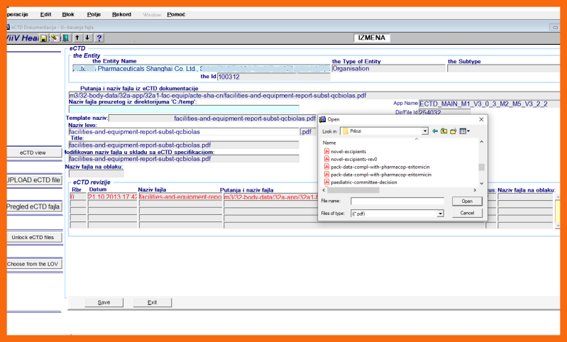 By clicking on the "Upload eCTD file" button, the file is uploaded to the Corporate Documentation Cloud.