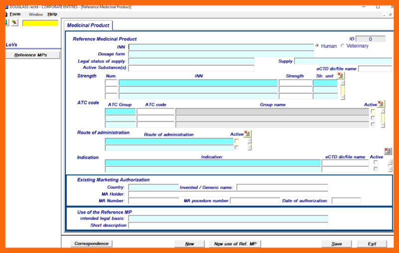 When all details are clarified, the next step can be initiated by choosing the menu item "Corporate Entity creation / Medicinal Product / Structural Data - Reference MP" on the "Corporate Entities" application module.