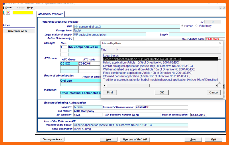 - create a Medicinal Product if the intended legal basis for the Reference Medicinal Product is "Article 10c informed consent application" - cmc entity person
