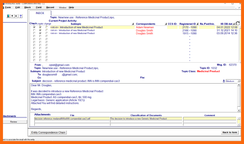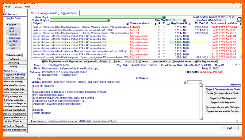 All correspondence from then on should be conducted using enriched email messages and the newly-created Reference Medicinal Product as the topic.
