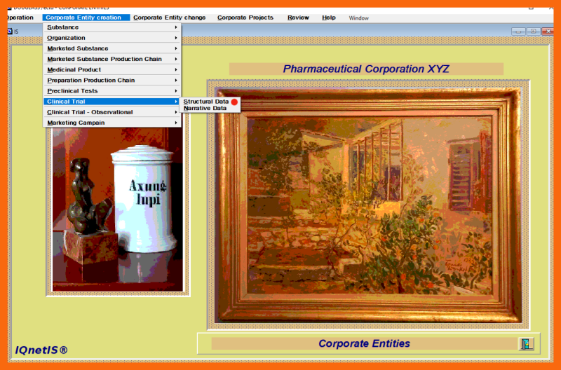 When all details are clarified, the structural definition process can be started by choosing the menu item "Corporate Entity creation/Clinical Trial/Structural Data" on the "Corporate Entities" application module.