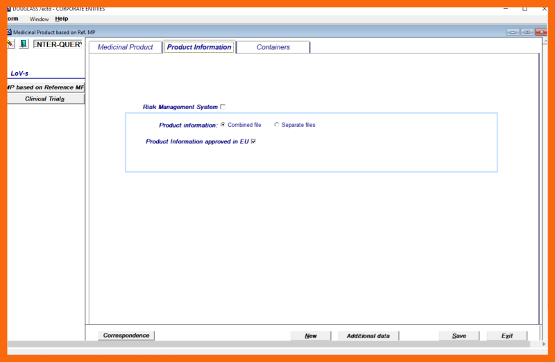 Gathering of documentation related to the creation of a new Medicinal Product based on the Ref. MP is a process that can begin before the receipt of the "basis for creation" enriched email and subsequent beginning of the structural definition. During that period database record for the new Medicinal Product and directory tree of replacement narrative files does not exists in the eCTD Integrated Information System and the only topic that can be used in the correspondence is "New Medicinal Product based on Ref. MP". Attached documents are classified and uploaded to the Corporate Documentation Cloud but they are not linked with the Medicinal Product based on Ref. MP that is going to be created. Nevertheless, linking of all correspondence to the newly created Medicinal Product based on Ref. MP is essential and it can be done when the structural definition is started.